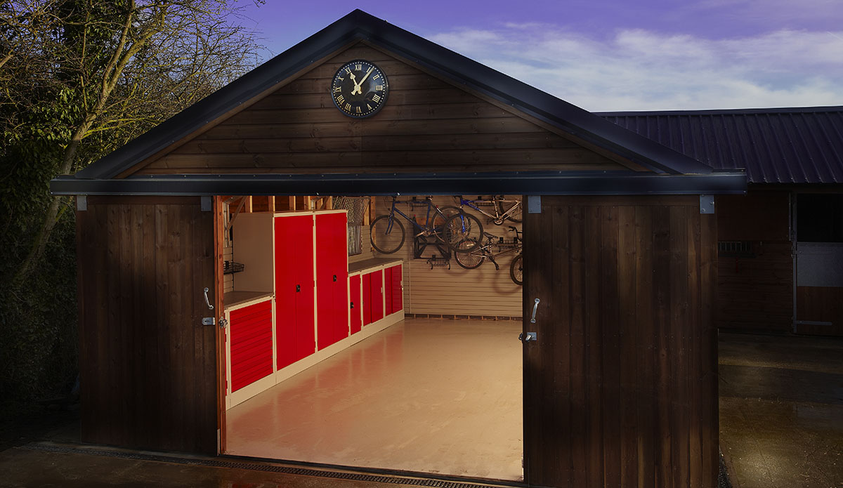 The client had a requirement for a barn interior to have a new level floor and secure attractive storage for bikes, tools, cleaning materials and general storage.